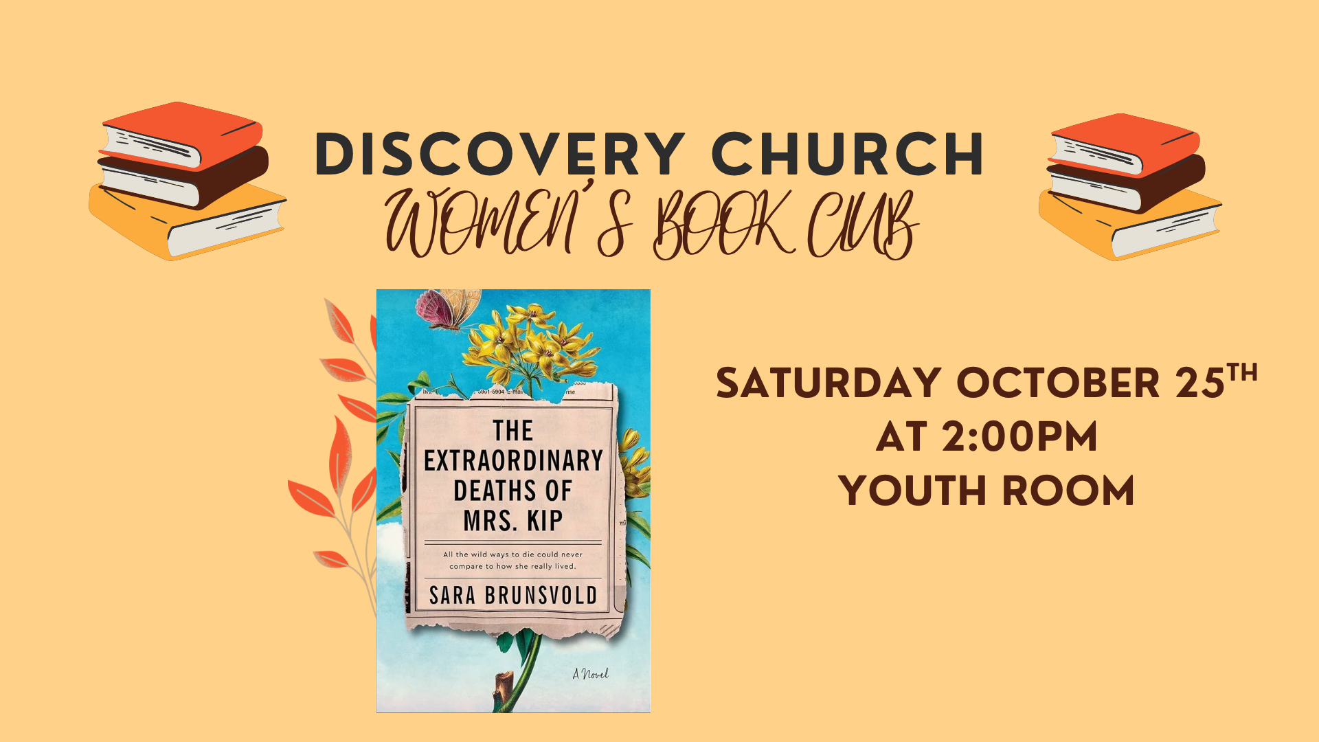 Ladies, join us for our October book club on October 25 to discuss our book The Extraordinary Deaths of Mrs. Kipp. Contact our Women’s Director, Kourtney Trewern, for more information!